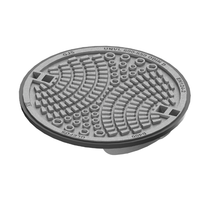 Dette dæksel er med åbne nøglehuller, fjederlås og påstøbt pakning.